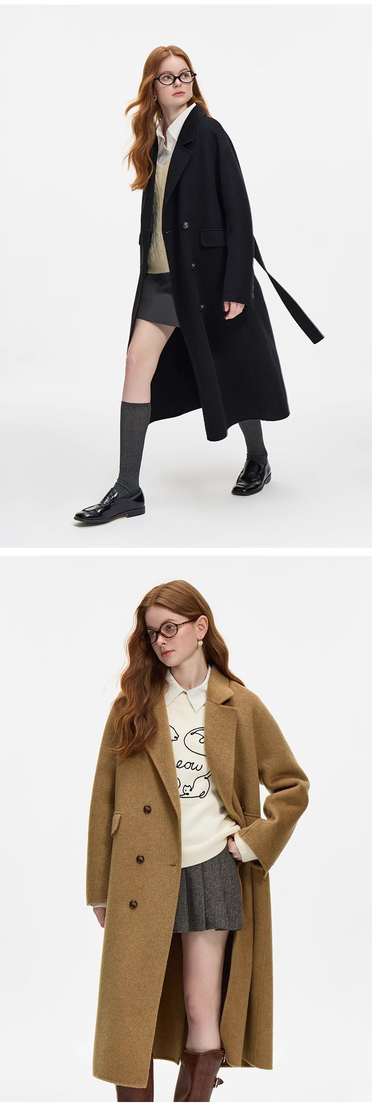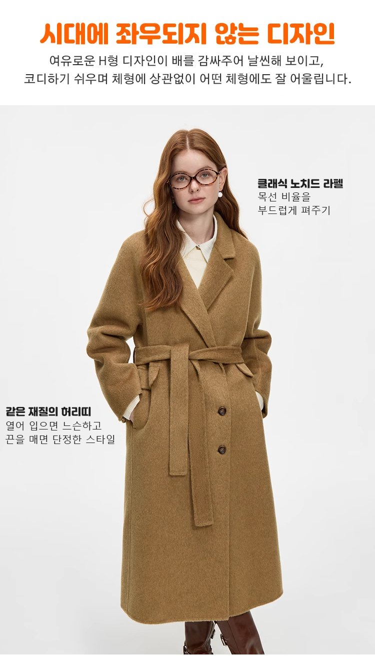 여성 미디롱 가을 겨울 헵번 모직 코트